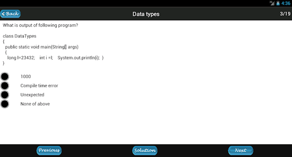 Java Inheritance Quiz Test.pdf DOWNLOAD HERE 1 / 2. http://www.pdfsdocuments.com/out.php?q=Java+Inheritance+Quiz+Test. Object-Oriented Programming in Java Quiz 1 Jan 10, 2001 Problem 1: Who wants to be a Java developer? (with apologies to Regis) Fill in your answer in the space provided. ... Fetch This Document